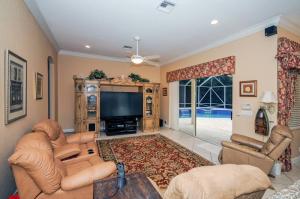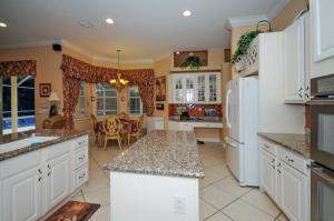 Fabulous sought after Dover model. Five bedrooms 3 full baths. 18'' tile on the diagonal,crown molding, tray ceilings and faux painted columns. Kitchen has granite counters, wood cabinets and updated appliances. Extended master bedroom w/sitting area. Master bath has a large soaking tub. Oversized screened patio with large freeform pool for the perfect entertaining set up!