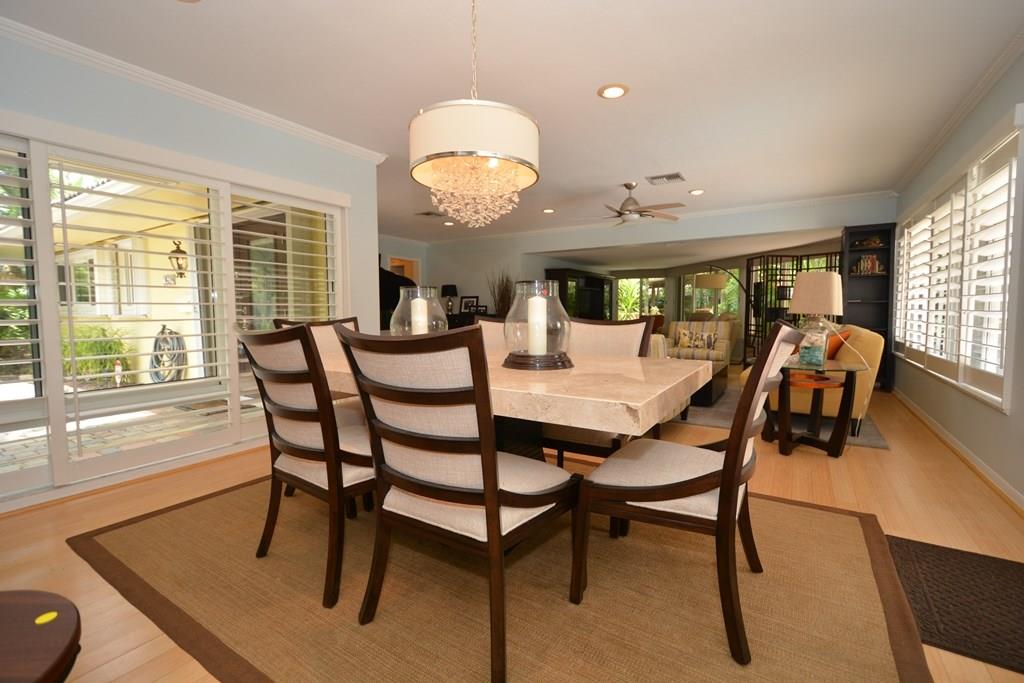 Beautifully renovated and professionally landscaped pool home is certain to please! Inside offers an open, split BR floor plan that flows seamlessly to multiple entertaining areas. Custom kitc. w/maple cabinetry & Argentinean granite counters. Hardwood flrs and walls of impact windows & doors. Outside boasts southern exposure, a sun-drenched salt water heated pool & hot tub. New plantation shutters, newer A/C, full house generator. Lots of closets, Over sized 2 car garage and laundry room. Fantastic area!