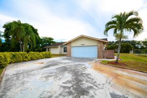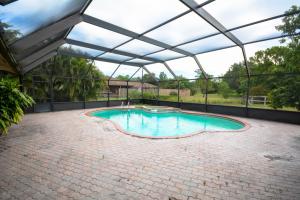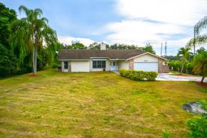 This is a BEAUTIFUL 3 Bedroom, 2 Bathroom Single Family Home located in The Acreage! It is situated on a spacious 1.25 acre lot with a 2 Car Garage, a HUGE Detached Garage, and a beautiful in-ground Pool. Upon entering the home, you will notice the entire interior has been updated with a fresh coat of paint that matches perfectly to the light Porcelain Tile throughout. To the right, there is a full-size Dining Room and in front of you, an open Family Room. The Family Room has a GOREGOUS Built-in Stone Fireplace that really adds great character to the room. It is open to the Living Room which backs right up to the modernized Kitchen. The Kitchen features very attractive light Hardwood Cabinets that offer plenty of room for storage and complimenting Granite countertops. Continuing through