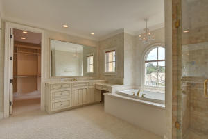 Tuscan villa inspired home in Royal Palm Yacht & Country Club with 4 bedrooms + bonus room and den, 5 full and 2 half bathrooms, and 5,124 sqft under air. This interior two-story home has a gated courtyard entry, 3 car garage and front circular brick paver driveway. Home features volume ceilings, custom molding details, marble flooring throughout all main living areas, 1st floor guest suite, gourmet kitchen with walk-in pantry, formal living and dining rooms, library/study with wood flooring and custom wood built-ins. 2nd floor master suite with his and her walk-in closets, sitting room/5th bedroom, private balcony, large bathroom with jetted tub, separate glass enclosed shower, sink, vanity and private water closet. Other features include 2nd floor laundry room and upstairs loft area.
