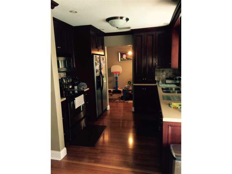 WARM and WELCOMING. Lovely four bedroom home nestled in well maintained and highly desirable family neighborhood. Custom built-in cabinetry in kitchen and family room. Wood floors throughout. 2 car garage with laundry area. Hurricane shutters. French door s open to fenced in back yard with large free-form swimming pool with ample room to relax and entertain. Split bedroom plan. Walk-in master closet with built-ins. Remodeled master bath with slate shower walls. Modern kitchen. Close to family park & shops.