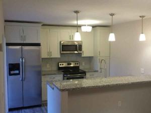 All wood cabinets, granite countertops, frameless glass shower, knock-down texture ceiling, new doors and closets, laminate flooring thru-out, stainless steel appliances, completely remodeled