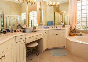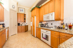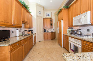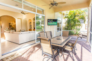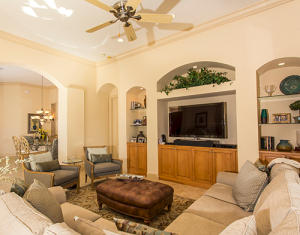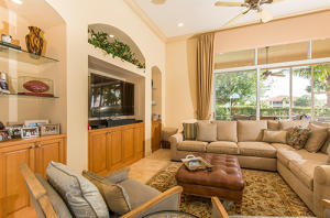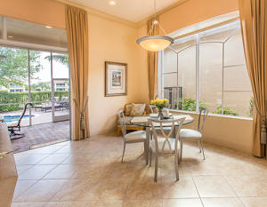 What a fabulous former builder's model! This light, bright, model-perfect, designer-done, upgraded 3BR/2.5BA+Den home boasts an ideal southern exposure, tile on the diagonal (with extensive inlays. upgraded wood kitchen cabinets, granite, tumbled marble back splash, custom built-ins (in great room and den) designed for today's technology. The serene pool and patio overlooks quiet views of the Tradition Course (no cart path or tee box!). Neutral tones, designer window treatments, double-glass front entry doors, carpeted garage, upgraded designer light fixtures, wall coverings, moldings and upgrades make this home a wonderful choice!