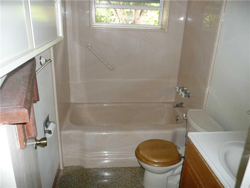 Charming move-in ready home with oversized backyard. Large patio. Updated bath and kitchen.Butcher block counters and under cabinet lighting.Stained open beam vaulted ceilings, terrazzo floors, custom blinds and ceiling fans throughout. Newer roof,windows ,upgraded electric, central A/C and heat.Newer electric fridge, range and stackable W+D.Two tankless electric water heaters.Water saver toilet.Fenced yard. Paver drive and walks. Hurricane shutters.Transferrable termite contract.Can be shown approx. 7/11.