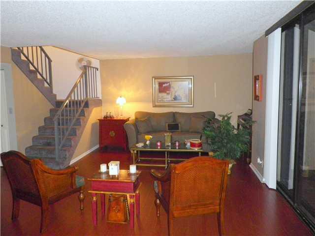 True pride of ownership shows in this clean spacious unique & extremely functional floor plan in gated community with covered tandem parking for two. Enter this 3rd floor condo featuring woodlike floors on main floor, neutral large eat-in kitchen with 2 pantries, remodeled powder room with pedestal sink, large open great room & fabulous oversized screen patio with storage room. Upstairs features 2 BR & 2 baths,great closet space. Impact glass windows thruout/accordian shutters on patio sliders.
