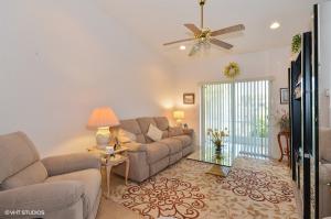 Spectacular Lake Views from Screened Patio. Immaculate move in ready. Spacious and maintained, screened entry. Gorgeous neutral tile throughout, extended screened patio, huge walk in closet in master, hurricane shutters too. A/C is only a few years old. Villa has doublewide driveway 1 car garage. Laundry in garage. Very Active 55+ community with 6 Bocce courts, 6 tennis courts, 4 shuffleboard courts, 1 resistance pool, 1 walking pool, 1 large Spa, Elegant Clubhouse with a full service fitness center, aerobics, billiard room, men's and women's locker room with sauna's. There is a Ballroom with a stage and privately contracted entertainment. So much More to list, see attached info for more info the ''Baywinds'' Lifestyle. Close to all shopping and minutes to the Fl turnpike,