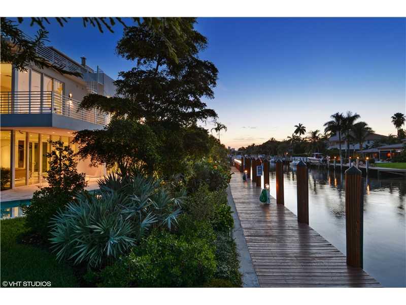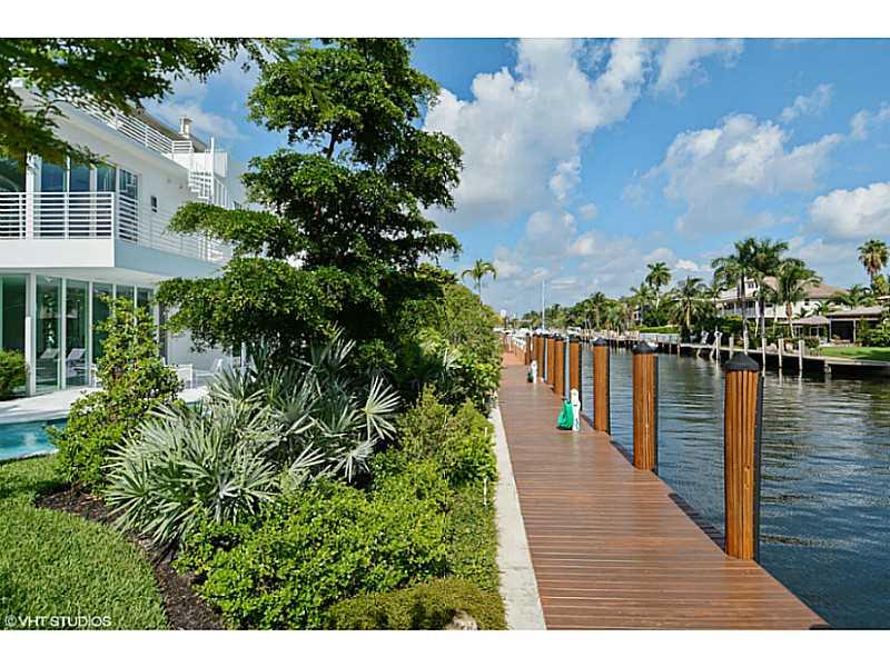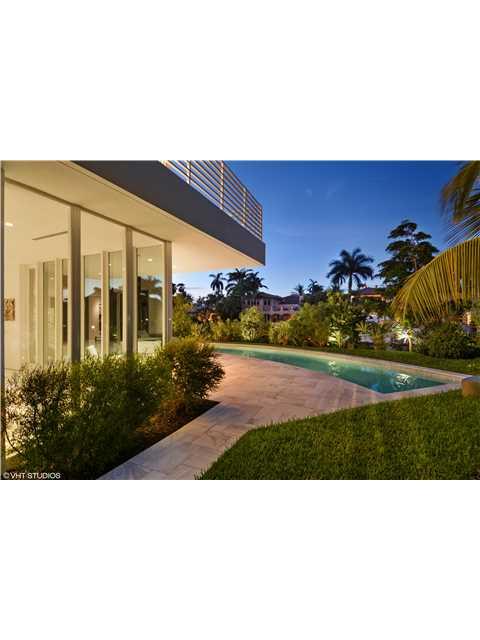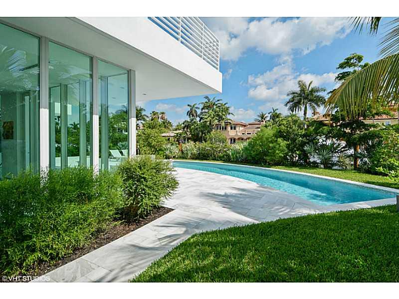 Stunning newly built modern masterpiece w/105' of deep water frontage on beautifully landscaped oversized lot. 5' setbacks permit dockage of a 95' yacht. High quality materials, flowing open floor plan, ideal for entertaining & active lifestyle. Glass ext erior walls showcase Intracoastal & canal views from every room. Chef's kitchen w/Italian cabinetry & top of the line appliances. Large rear yard w/entertainment-sized patio & salt water system pool. 3 car garage w/storage & height for car lifts.Generator