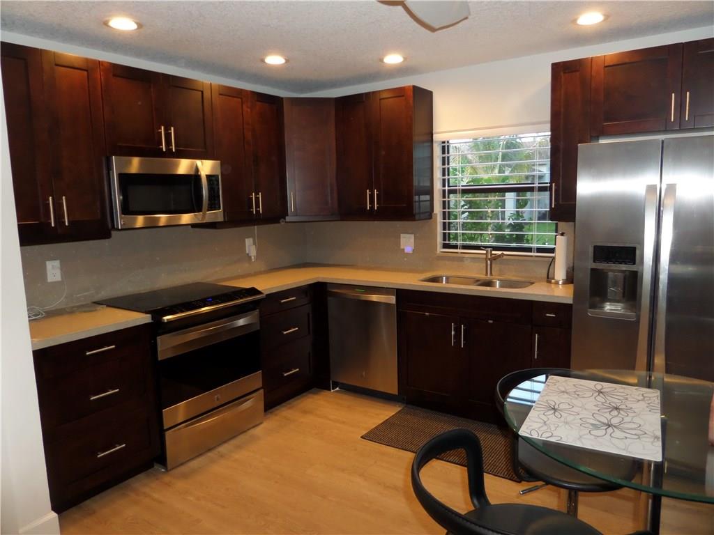 BEAUTIFUL CONTEMPORARY SINGLE STORY COMPLETELY $70K REMODELED FLOOR TO CEILING. NEW $18K HURRICANE IMPACT WINDOWS/SLIDERS THROUGHOUT-- NEW LAMINATE FLOORS THROUGHOUT, NEW KITCHEN & BATHROOMS W/QUARTZ COUNTER TOPS, NEW FANS&HIGH HATS. NEW $5K CARRIER HIGH EFFICIENCY A/C, POPCORN CEILING REMOVED, FRESHLY PAINTED, NEW HUNTER DOUGLAS BLINDS, PRIVATE GARDEN VIEW W/LARGE PATIO, MOVE-IN READY PERFECTION! NOTHING LEFT TO DO IN THIS UNIT. WILL GO FAST. (55"PIONEER PLASMA TV INCLUDED) DEL PRADO ELEMENTARY DISTRICT