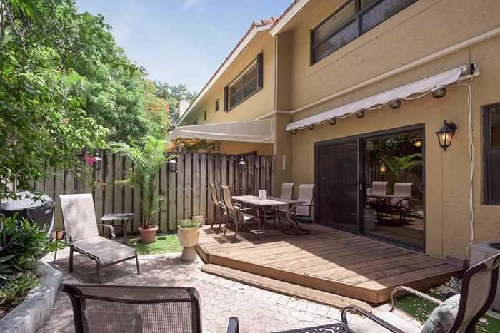 Charming, beautifully landscaped complex East of Federal Hwy in great neighborhood. Spacious, light filled home. High Impact windows & sliding doors. Large, decked back yard, privacy fence--grill, dine, entertain, relax & enjoy. Beautiful marble and neutr al carpet. Coral rock fireplace. Two master suites. In-unit washer & dryer. Large walk-in closets. Dining area chandelier & sconces do not convey. Close to Las Olas, downtown, beaches. Pet friendly, two dogs, non-aggressive breeds. 25% down payment.