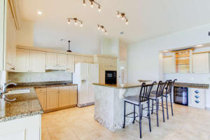 Immaculate, move-in ready! Guard Gated & very secure. Fantastic .40 acre corner lot with sparkling lake views & beautiful sunsets. 42' covered porch + open patio w/heated pool & 8 person above ground Hot Tub. Partly fenced yard. 3 car garage w/hurricane rated doors. Stone look tile throughout living areas. Vaulted ceilings - NO POPCORN! Interior JUST painted. New Cabana Bath door. Upgraded kitchen w/wood cabinets, granite counters, new dishwasher & wine cooler. Trane AC 2012. Water Heater 2013. ''S'' tile roof 2004.Split BR's. Master Suite w/walk-in closet,Roman tub,dual vanities + separate remodeled shower . 5th Bedroom/Den/Office/Nursery/Gym is located off Master Bathroom. Interior laundry room w/sink & extra pantry storage. ''A'' rated schools,parks & shopping just moments away.