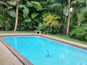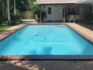 Very Nice 3 Bedroom Pool Home, 2 car garage, new stainless steel appliances, oak kitchen cabinets with pull out shelves, tile thru out, central vac system, all new guest bathroom, large laundry room, family, living, dining room, back patio has over hang to install a tv for your favorite show or game and hurricane shutters for all openings. The east side of home there is room for a boat, rv or etc. Fenced yard and lush landscaping.