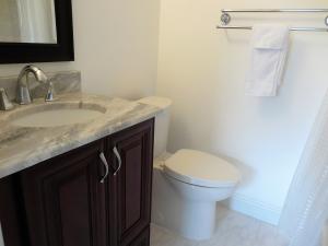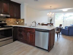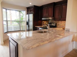 2 story town home located in gated intracoastal community in east Boca Raton. Updates galore..! With grey/white thick granite counters, new cabinetry including soft close doors, lazy susan, stainless steel appliances, glass backsplash, recessed lighting. 5'' baseboards, new doors/hardware, thick crown molding. Hunter Douglass blind on downstairs sliders for ultimate privacy. Wood tile floors both upstairs and downstairs, and on landing. Stairs opened up with railings to maximize downstairs open-ness. New baths with new vanities, granite counters, tiled showers, tiled flooring. Master bedroom re-configured to move closets to opposite side of room to maximize space. Accordion shutters! Fenced patio!