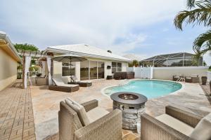 Totally renovated 3 BR/2 BA home with 10 ft ceilings, fantastic new kitchen layout, 2car garage, laundry room, central vacuum, large closets throughout, private pool and Jacuzzi overlooking stunning sunsets and the Bear Lakes Country Club golf course. NO mandatory membership! Located in the quaint gated and guarded community of ''Bear Island'' and located minutes to I-95, the Palm Beach Airport.