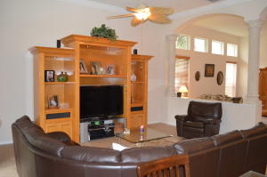 Your perfect home just became available! This fabulous 1 story floor plan is located in a sought after community with beautiful pool, sauna, exercise room, game room, excellent location that is close to everything. Well maintained home with high ceilings, accordion hurricane shutters on all windows, beautiful wood plantation shutters in den and family room. Large master bedroom, huge walk in closet with custom built cabinets, two additional bedrooms with a large size full bathroom, plus an additional den/office with fabulous bay window, this room can be used as a fourth bedroom and it is adjacent to the third full size bathroom. Large three car garage, newer AC and water heater. Backyard is completely fenced in, so you can enjoy a cup of coffee in your screened and covered patio!