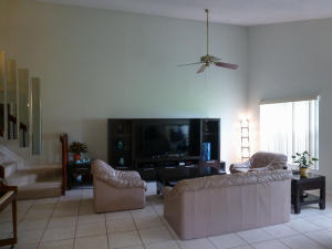 This 3 bedroom, 2.5 bath townhome features a huge great room with vaulted ceiling. Screened and covered patio area great for entertaining. Downstairs master bedroom. The front of the home faces a nicely-landscaped yard with an avocado tree. Quiet community with well-funded HOA (large reserve) provides use of 2 community pools, 2 tennis courts, 2 racquetball courts and a clubhouse with party room, kitchen, and exercise room.