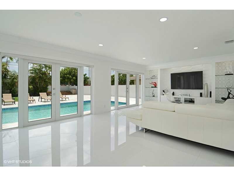 Stunning , bright and spacious house with modern look in Coral Ridge area. New floors throughout the house, beautiful kitchen with a center isle and all new stainless steel appliances. The living room and dinning area overview the pool through large hur ricane impact windows. A 4/3 house with 2 car garage, separate laundry room,paved circular driveway. Great fenced backyard with a oversized pool an lots land. All furniture and TV's are included. Best location,1.5 miles from the beach,near good schools.