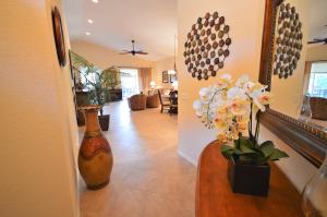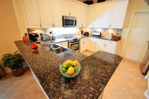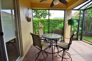 TOWNHOUSE SHOWS LIKE A MODEL! IT IS COMPLETELY RENOVATED AND TASTEFULLY DECORATED. YOU WILL ENJOY THE GRANITE COUNTERTOPS AND GLASS BACKSPLASH, STAINLESS STEEL APPLIANCES AND 42" WHITE WOOD CABINETS IN OPEN CONCEPT KITCHEN. DINING AND LIVING AREA WITH SLIDING DOORS TO SCREENED PATIO WITH OUTDOOR SITTING FINISHED WITH TILED FLOORS. THIS HOME FEATURES VALUATED CEILING, PLANTATION SHUTTERS IN SECOND AND 3TH BEDROOM, NEW CARPETING, CROWN MOLDING IN SECOND BEDROOM, NEW FANS AND LIGHT FIXTURES, ADDITIONAL INSTALLED GUTTERS AROUND THE HOUSE, CURBING AROUND WALKWAY AND ALL PALM TREES. THE MASTER BATH HAS DOUBLE SINK, ROMAN TUB AND NEW UPGRADED SHOWER WITH EXTRA PLUMBING FIXTURES.