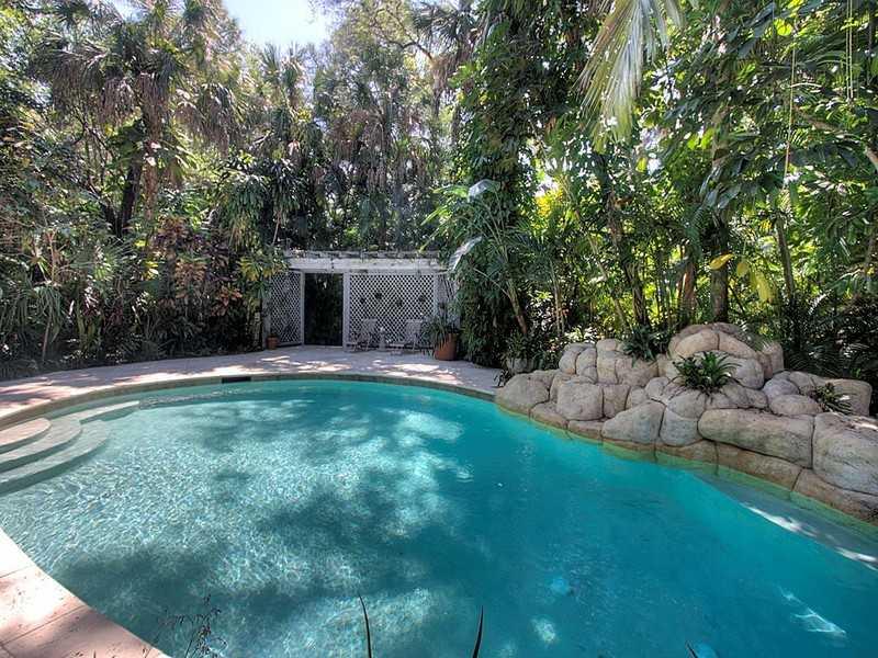 PRIVATE TROPICAL OASIS--This 4 bdrm POOL home on EXTRA LARGE lot is minutes to LAS OLAS, Downtown & BEACH. Once you step onto this property, you no longer feel like you are in S. Florida--wood vaulted ceilings, exposed beams, open kitchen exquisite floor- to-ceiling, 90 degree AND bay windows to enjoy the tropical freeform pool area w/ rockscape waterfall accented w/ a quaint bridge that leads to in-ground hot tub. Lush landscape. 3-car+ Garage converted to ofc (can be restored). Large side yard for pkg.