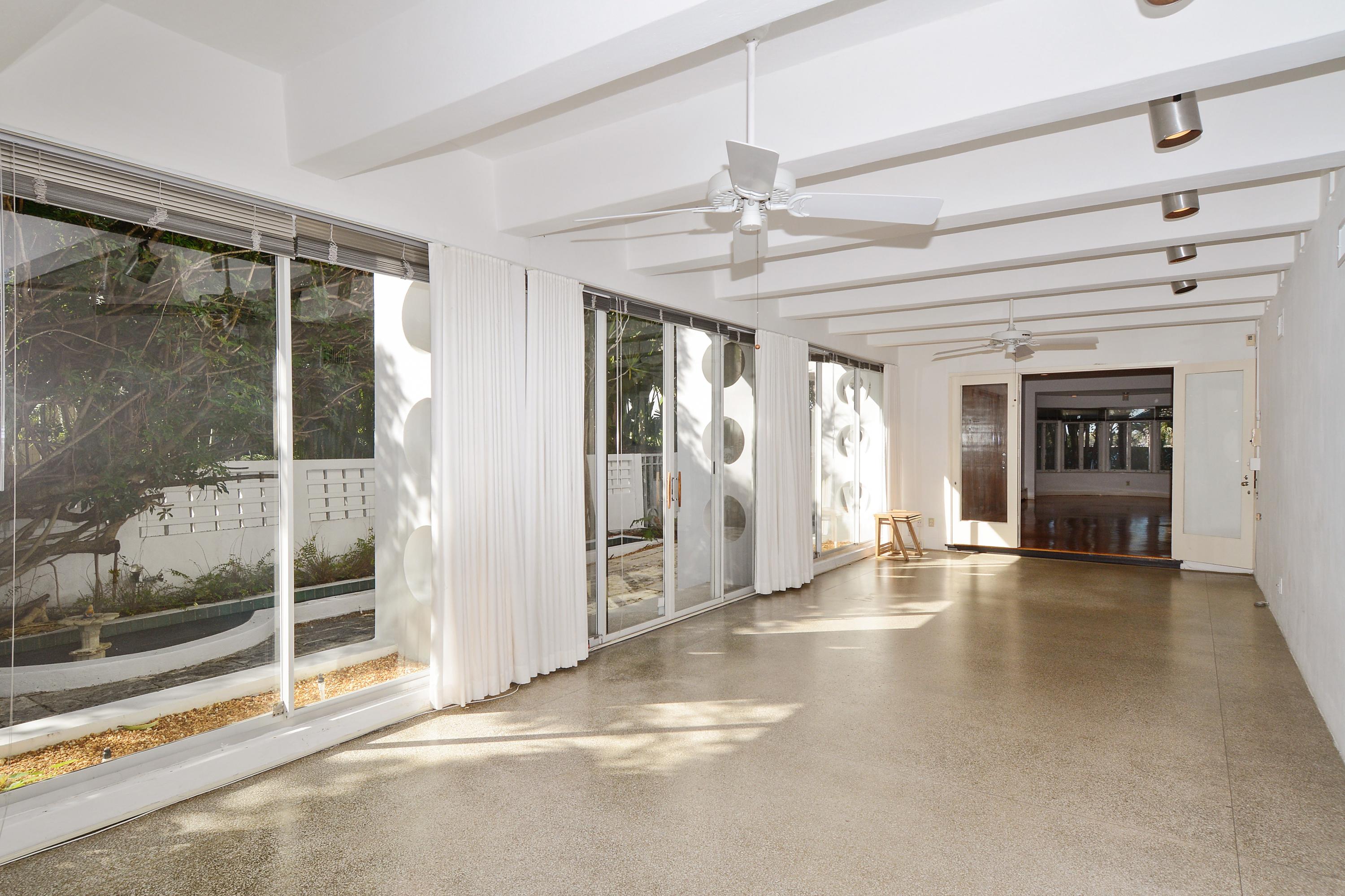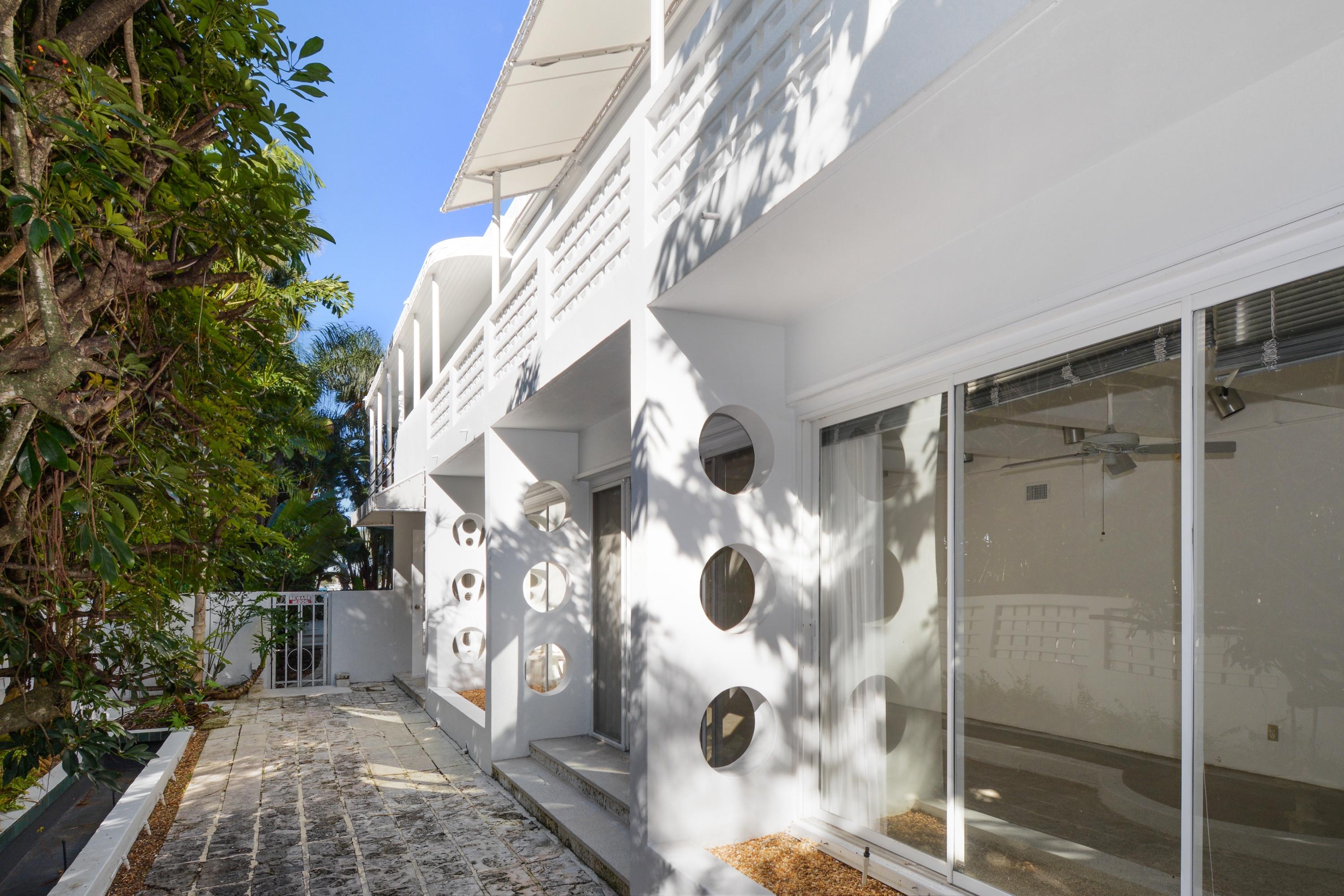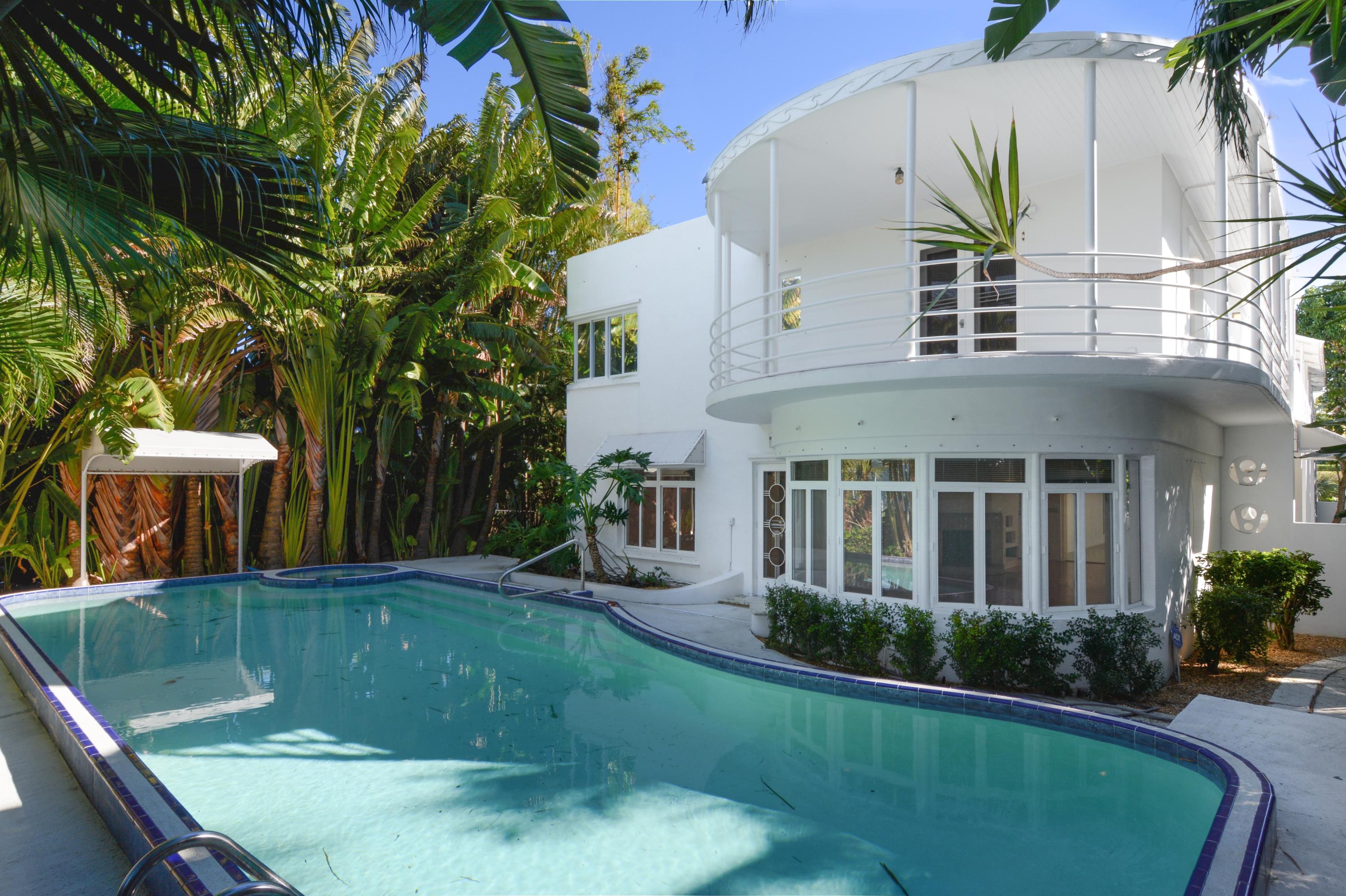 1221 North Lake Way was built in 1940 and designed by Belford Shoumate who was the most popular architect of Modernism on the island of Palm Beach. Designed as a 6,000 SF 'Nautical Mansion' the 'Fore and Aft House' was featured in the 1939 World's Fair as one of the Houses of Tomorrow. That fair had a lasting influence on American Architecture.Following Art Deco, the International Style of Architecture grew out of a fascination with industrial design and speed, particularly, automobiles, trains, boats and planes. The southern elevation of the 1221 has concrete porthole columns that repeat along the windowed curtain wall and the upper decks feature steamship railings. The extreme right of the house (eastern elevation) has a 2-car Y shaped garage with 2 exits.