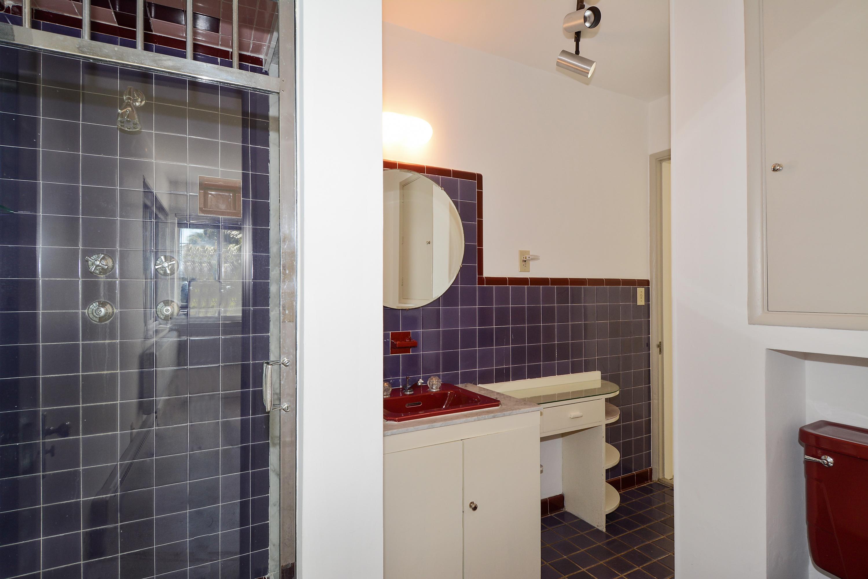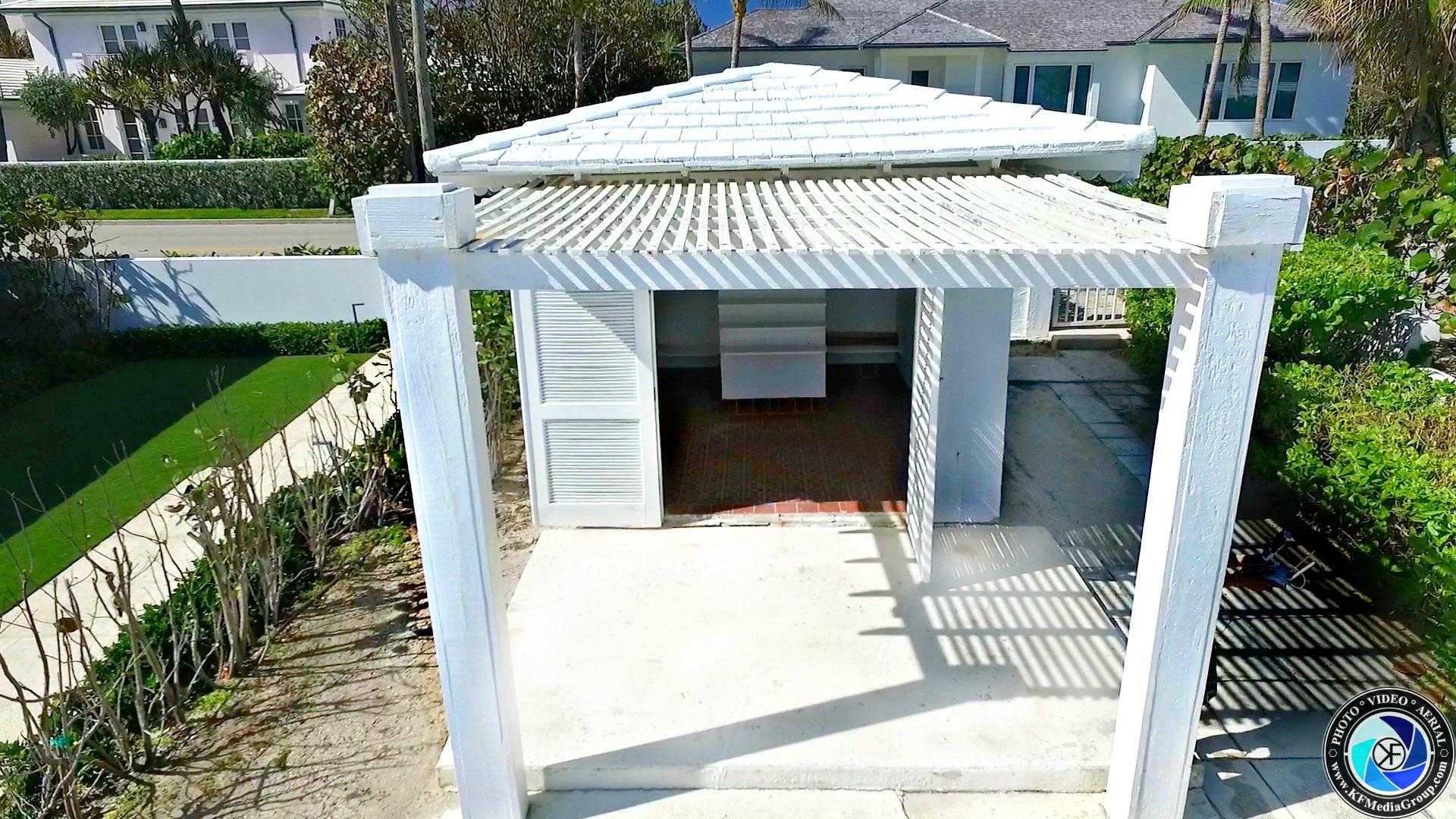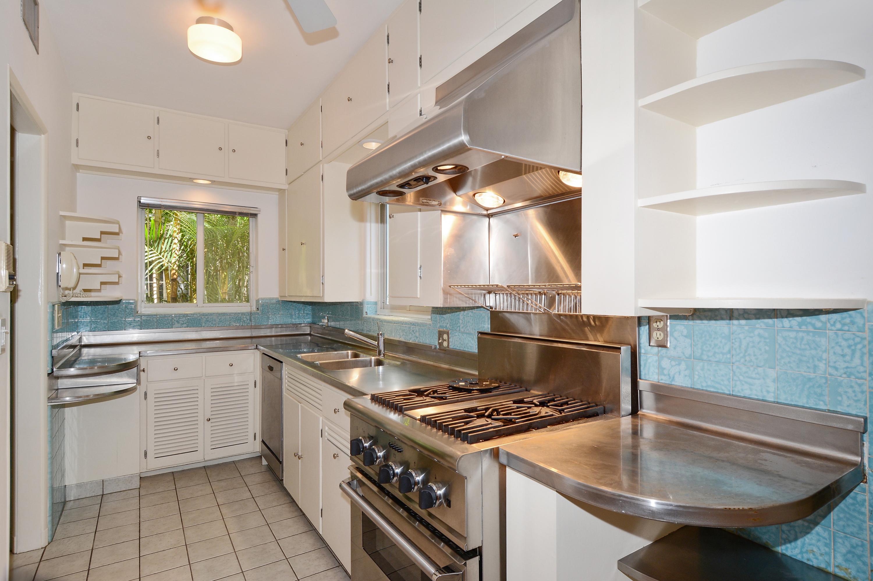 1221 North Lake Way was built in 1940 and designed by Belford Shoumate who was the most popular architect of Modernism on the island of Palm Beach. Designed as a 6,000 SF 'Nautical Mansion' the 'Fore and Aft House' was featured in the 1939 World's Fair as one of the Houses of Tomorrow. That fair had a lasting influence on American Architecture.Following Art Deco, the International Style of Architecture grew out of a fascination with industrial design and speed, particularly, automobiles, trains, boats and planes. The southern elevation of the 1221 has concrete porthole columns that repeat along the windowed curtain wall and the upper decks feature steamship railings. The extreme right of the house (eastern elevation) has a 2-car Y shaped garage with 2 exits.