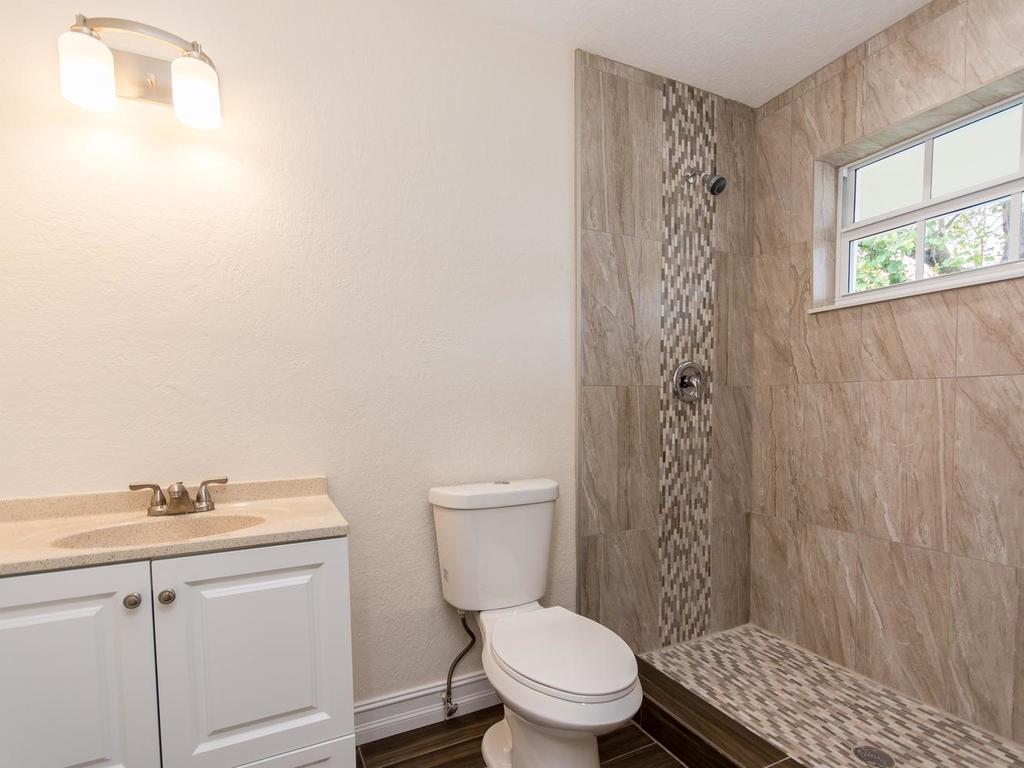 This beautiful home located in Plantation Acres shows like a model! Completely redone inside & out featuring an open kitchen with knock down walls & island overlooking formal living/dining room & family room with a real fireplace. Brand new roof. Beautiful split open plan layout. Wood floors in bedrooms & porcelain tile. Laundry room. Very spacious rooms and lots of natural light. Garage in process of being converted back into legal garage w/street side accessibility. Fenced in yard with pool.
