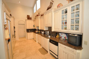 Expansive lake and golf course views enhance this lovely 3-bedroom updated home which is on one level with NO STEPS. Beautiful etched glass entry doors open to a spacious living room, dining area, and bar with volume ceilings, marble floors, beautiful built-in cabinetry and fabulous views. The light and bright kitchen features granite countertops and includes a breakfast area. The master suite features built-ins, architectural details, and his and her baths. There are two additional guest bedrooms, one of which is currently used as an office and features built-in Murphy beds. Entertaining outdoors is easy with a built-in barbecue, expansive covered and open patio space, and a large pool. The views are spectacular from every vantage point! This immaculate home is a must-see!