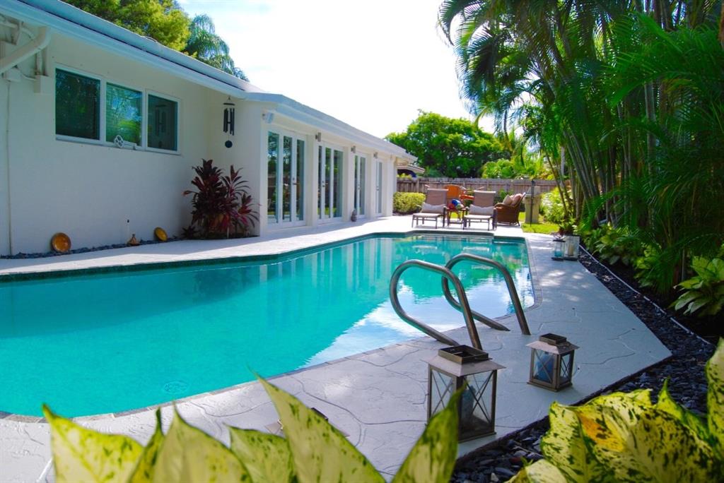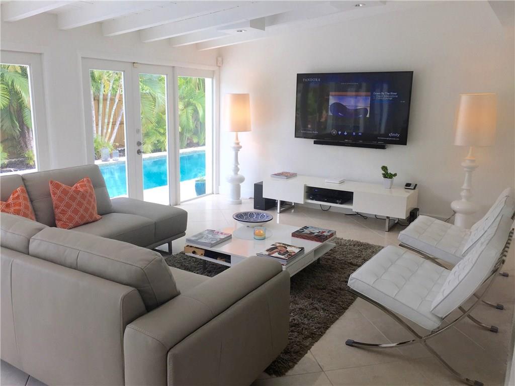 Escape to renovated, light & bright, Mid-Century modern retreat in heart of Coral Ridge. Wide open, zen-like floor plan allows for easy entertaining & flexible living spaces inside and out. Everything is like new: wood floors in bedrooms, new dryer, newer washer, impact windows, kitchen, lush landscaping and 5T A/C. Exterior & interior just painted, LED hi-hat lighting throughout home. Expanded living/dining room offers beautiful pool & garden views. Owner financing available. Furniture is negotiable.