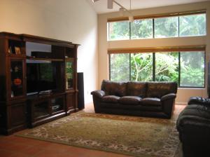 This is the perfect home for today's lifestyles. The great-room type layout has a massive living and dining area with vaulted ceilings: terra cotta tiled floors and a kitchen that is open to all. It gives you the maximum flexibility for enjoying and entertaining friends and family. The kitchen counters and snack bar are tiled. You'll love using the brand new (July 2014)GAS LG stove!!All the other appliances are newer, stainless steel LG's too! Plus, there are 2 windows in the kitchen!The versatile living/dining area overlooks the screened patio and the private, lush backyard.The master bedroom is on the first floor with sliders leading to the patio; ensuite bathroom with dual sinks & roman tub; plus a roomy walk-in closet. The comfortable 2nd & 3rd bedrooms are upstairs. The guest