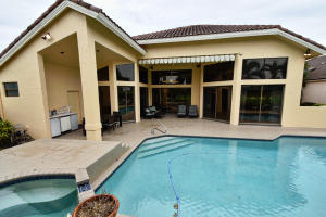 Cedar Glen 3 bedroom, 4 bath free standing patio home on choice water and golf course lot. Over sized patio with heated pool and separate spa. Open floor plan with high ceilings. Light and bright. Custom bar. Wood floors in living areas. Separate family room. Newer kitchen with granite counters and stainless appliances. Updated master and hall bathrooms. Offered furnished with some exclusions. Great entertaining home. Club membership required.