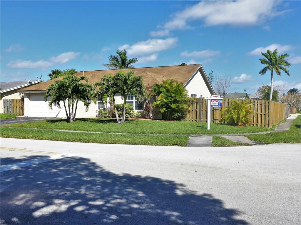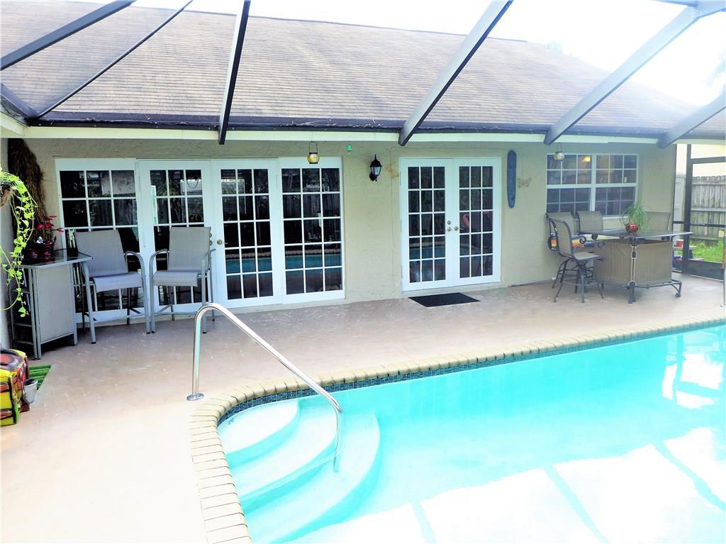 Modern remodeled 3 Bed/2 Bath home featuring a den to use as office/mancave/arts & crafts! Kitchen has granite counter tops & white cabinets w/ large eat in area! Home boasts vaulted ceilings, no popcorn, large 16" tile, new wood floors w/ modern baseboards! Impact windows & french doors! Huge screened patio w/large pool! Lots of room for entertaining! Over-sized corner lot! This home is move in ready! Beautiful well kept community, NO HOA, walking distance to parks, playgrounds & lake! Great location!