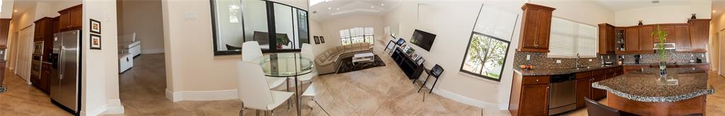 Gorgeous One Story Home with lakeview! Open layout, vaulted ceilings, impact windows, wood cabinets, building oven/microwave, all ss appliances, 2 high-efficiency A/C units, decorator light fixtures, and many more upgrades! excellent community and locatio n!