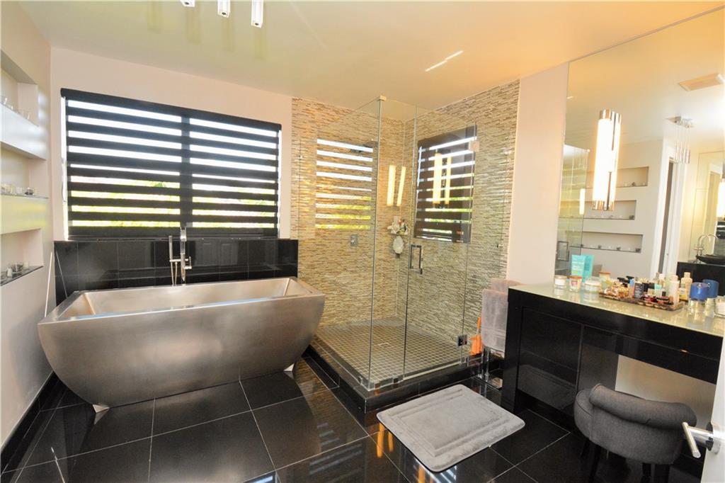 This gorgeous home has been remodeled w/ top of the line fixtures & features throughout the bedrooms & bathrooms. Marble floors, real wood floors, modern fixtures, new tiles, frameless showers, rain shower heads, sinks, etc. Huge custom pool, travertine pavers, and pool deck. Backyard w/ lush landscaping and privacy fence. The gourmet kitchen has all new commercial grade stainless steel appliances, marble countertops, Huge eating island, built in micro, modern cabinetry, butler’s pantry, & much more!