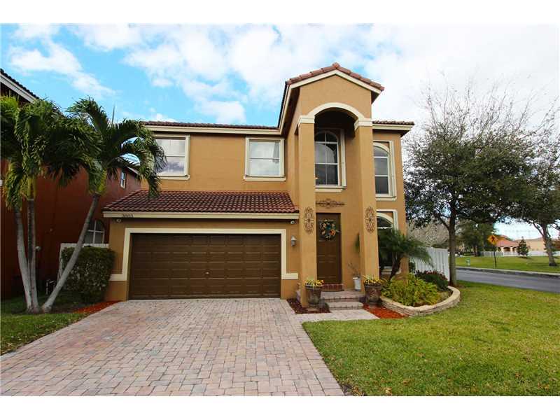 Gorgeous 2-story single family home with a great floor plan - Home has 3 bedrooms + a Loft that is being used as an office or children's play area - The high volume ceilings on this Corner Lot give the home a bright and airy feel - Oversized k itchen equipped with plenty of tall 42'' kitchen cabinetry and an extended counter space/buffet bar - The kitchen opens to the spacious family room overlooking the paved and fenced in private patio which is beautifully landscaped