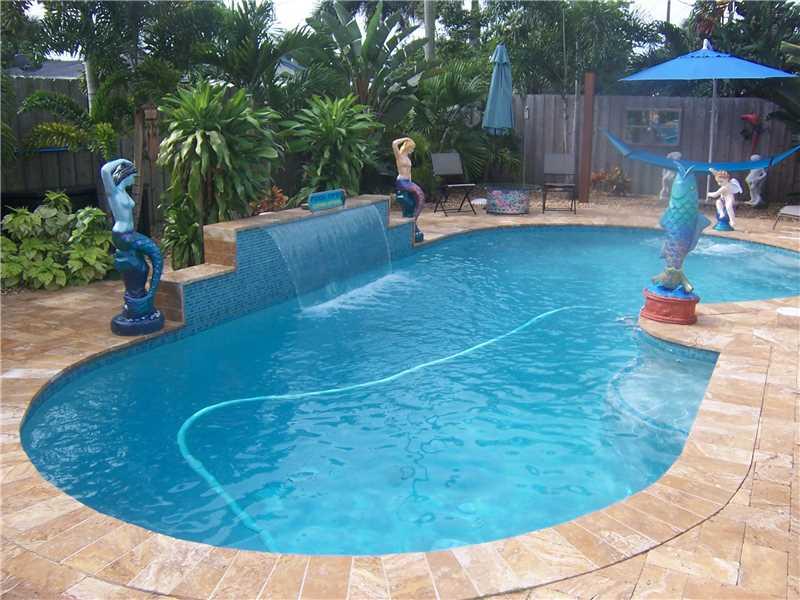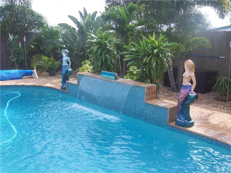 A fully furnished tropical Key West oasis in the heart of the City. Amazing heated electronic SW pool & spa w/waterfall in the midst of a fantasy yard w/beautiful landscapes, hammock & patio furniture, plus an expandable electric awning to cover your pati o for those hot summer days. This 3/1 has tile floors, a white bright kitchen w/tile counters & dinner bar, master bedroom w/twin closets (one a walk in), bath w/updated vanity, sink & commode. Updated electric,2012 digital a/c, ceiling fans and shutters.