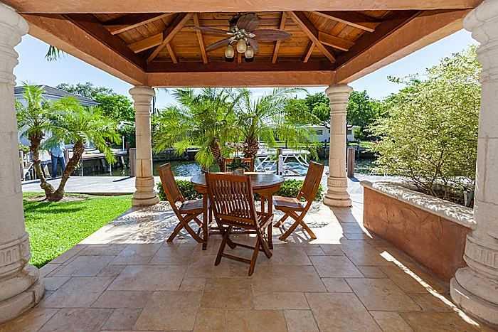 Unique Tuscan elegance & craftsmanship by renowned architect. One-of-a-kind second level pool. Motor court & inviting tree canopied courtyard lead to double door entry of hand carved mahogany. Two story foyer entry opens to hand crafted brass rail stairca se & elevator & 2nd floor main living area. Gourmet kitchen, great room with fireplace & dining room open to spectacular covered patio & private pool area. State of the art theatre, protected deep water dockage, gated community close to schools/Las Olas