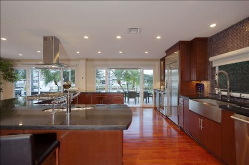 Intracoastal Views 3rd Home from the Point. 100 Ft Water fits 80 Ft Yacht. Major Renovation a few years ago with Quality Everywhere. Brazilian Cherry Wood Floors Throughout. Impact Glass. New Roof. Open Gourmet Kitchen has Custom Wood & Glass Cabinetry, G ranite Tops, Wine Cooler, Stainless Steel Appliances, Gas Cooking, Island Counter Seats Four Barstools. Onyx & Marble Baths. Integrated Sound & Flat Screen TVs. Rebuilt Seawall has Wide Cap. Boat Lift. Paver Deck & Fire Pit. Brick Drive. Walls of Glass.