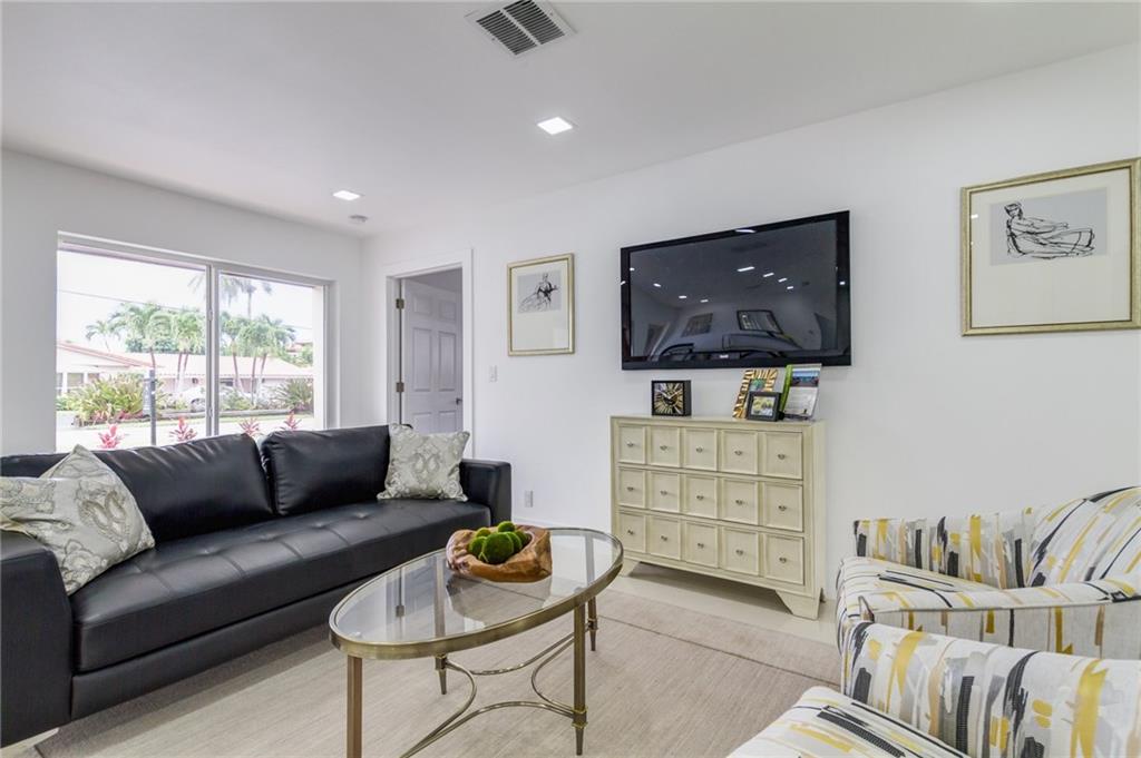Beautifully Remodeled Coral Ridge Isles Waterfront Home! Featuring direct ocean access and its own dock, this home has a brand NEW barrel tile roof, NEW impact windows and doors, brand NEW kitchen with quartz counter tops and stainless steel appliances. All 3.5 bathrooms have been remodeled with high end finishes as well as electrical has been updated throughout entire home. Also featuring LED lighting, NEW tankless water heater, large circular drive way, paved pool deck and open concept great room!