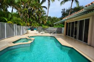 Beautifully maintained and tastefully decorated Home located in gated community of Riverwalk. Community is located 15 minutes from everything that makes Palm Beach County a great place to live including the ocean beach and 5 Stars Resort style amenities! The covered screened entry opens to the foyer leading to the livingroom with a 14" vaulted ceiling and custom built wall entertainment center that opens to the dining area with sliding glass doors to a covered patio. There is additional 3 panel sliding door lead to open in-ground heated pool with SPA and built-in outdoor grill for your family entertainment located directly on end of community lake and corner oversize lot with lush landscaping. There are granite countertops and wood white cabinets with matching appliances in kitchen.