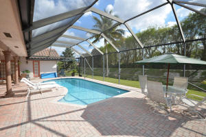 Lovely 4 BR 2.5 BA home with French doors vaulted ceilings and eat-in kitchen with breakfast bar on interior lot with nice curb appeal. Large granite kitchen with garden windows. Wood floors in LR and family room, with fireplace in LR, nice granite wet bar between LR and Family room. Great for entertaining. Totally private screened-in and covered pavered patio for your outdoor furniture. Diamond-Brited pool. Fenced-in side yard for pets. Roof and skylight replaced 2007, newer garage door and opener, newer central vac, newer hot water heater. Gated community in desirable location between FL turnpike and I95, close to Town center mall. Excellent schools, Del Prado Elem, Omni Middle, Span River High. Enjoyable Estancia Park area . Tennis, basketball, fishing, playground.