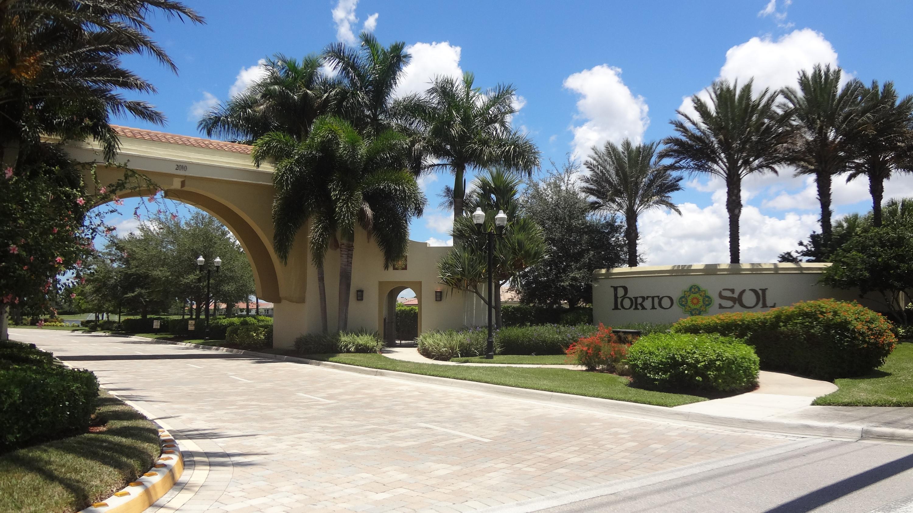 Reduced to $419K! Best value in PortoSol at $146 per sf! The most spectacular and panoramic lake view in the gated and prestigious resort community of PortoSol. This 4/5 bedroom home built in 2014 is immaculate and boasts a total of 3,470 sf including a two car garage with 2,873 sf under AC. All windows and doors are upgraded to hurricane impact resistant specification. It is complete with its own home theatre room 20'X10' with all of the sophisticated movie and surround sound equipment included! This theatre area was designed by the developer so it can be a downstairs bedroom with a full en suite bathroom and can be converted to that use, making this home a 5/3/1/2cg versus the current (Co
