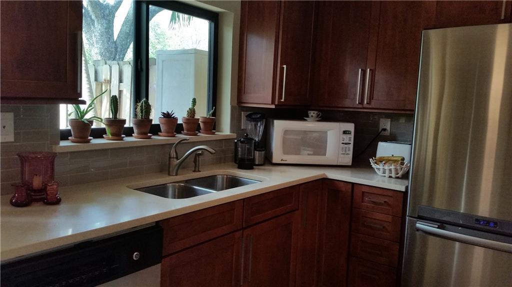 DOWNTOWN LIVING? HERE IS THE PERFECT PLACE, HARDLY AVAILABLE. THIS TASTEFUL UPDATED TOWNHOME FEATURES NEW WOOD KITCHEN W/STAINLESS STEEL APPLIANCES, GRANITE COUNTERS, LARGE SNACK COUNTER, GREAT BREAKFAST AREA, ALL CONNECTED DIRECTLY TO SPACIOUS BACKYARD FOR PRIVATE INDOOR/OUTDOOR ENTERTAINING. FOYER ENTRANCE LEADS TO TILED LIVING/DINING AREA, NICE POWDER ROOM SAME LEVEL. GOOD SIZE BEDROOMS UPSTAIRS, BEAUTIFUL REDONE BATHROOM W/HUGE SHOWER AND LAUNDRY ROOM. MASTER HAS ROOMY WALK-IN-CLOSET. GATED COMMUNITY.