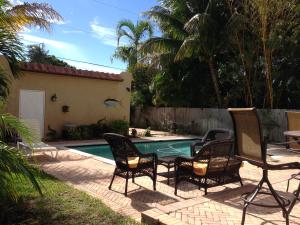 Charming two-story 3 Bedroom, 2 1/2 bath home located in Flamingo Park on a large corner lot. This 1925 home has original polished hardwood floors, a renovated kitchen with marble countertops and stainless steel appliances, a master bedroom with huge custom closets and a private master bathroom which includes a double granite vanity and steam shower. The two additional bedrooms share a full bathroom. The home also includes a bright downstairs den enclosed by French doors. There are nice double doors in the dining room leading out to a tropically landscaped and paved pool deck. Other desirable features are dual zoned A/C units, a fireplace, pool heater, hurricane & accordion shutters, newer roof, new sewer line, impact window tint throughout home.