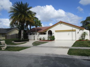 Don't miss this move in ready 4 bed 2 bath pool home on a cul-de-sac featuring fresh paint inside and out, tile floors in the living areas, an updated open and spacious kitchen, split bedrooms, wood laminate floors in the bedrooms, a cabana bath, French doors with patio access in the master suite, and a large screened patio and pool with spa overlooking the golf course. Escondido is a guard gated community conveniently located close to the Florida Turnpike, West Boca Medical Center, the JCC, schools, shopping and dining.