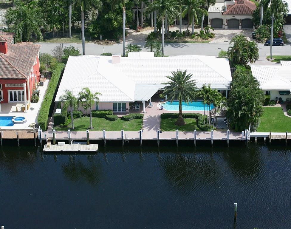 120 Feet Water Accomodates 100 Ft Yacht on Wide & Deep Canal. Impact Glass. New Roof. Detailed Coffered & Tray Ceilings Throughout with Extensive Millwork. Has Two Master Suites, One Views the Water. Chilled Wine Room. Hardwood Floors. Kitchen Includes Ga s Cooking, Downsview Cabinetry, Two Dishwashers, & Four Ovens. Living Areas Include Fireplace, Office or Library, & Family Room with Media Center. Large Covered Loggia & Seperate Tiki Hut. Full Service Dock for Yachtsmen. Underground Utilities.