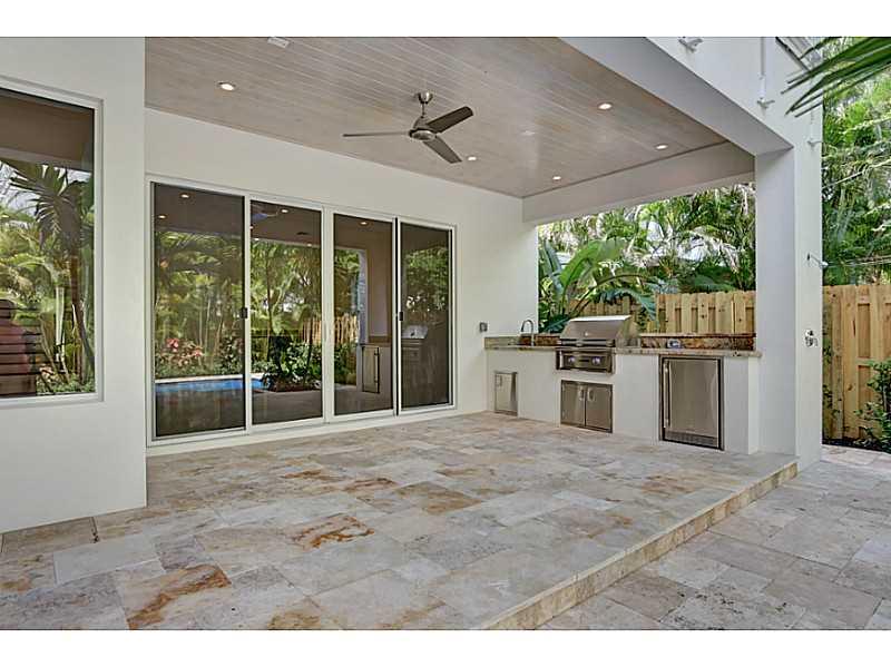 BRAND NEW 2015 5br/ 4bth Contemporary home located in Rio Vista, Ft Lauderdale's most sought after family neighborhood. Staged Furnishings Make You Feel Right At Home! Open floor plan w/5th br down, Gourmet Kitchen w/Thermador SS appliances & 10' island. Entertainment features incl. a stunning wet bar and a full outdoor kitchen surrounded by lushly landscaped pool. Marble floors downstairs. SS & wood stairs lead to a huge master suite w/private balcony and 3 addt'l bedrooms. Security system/Smart Home.