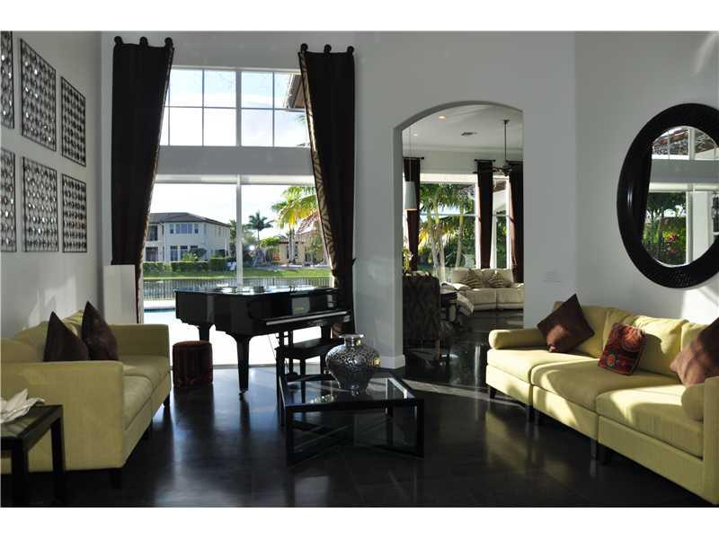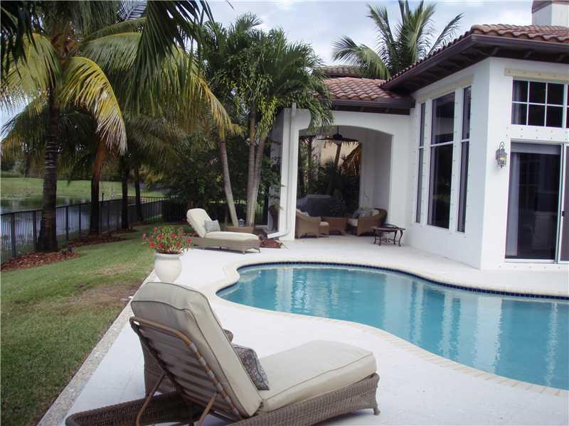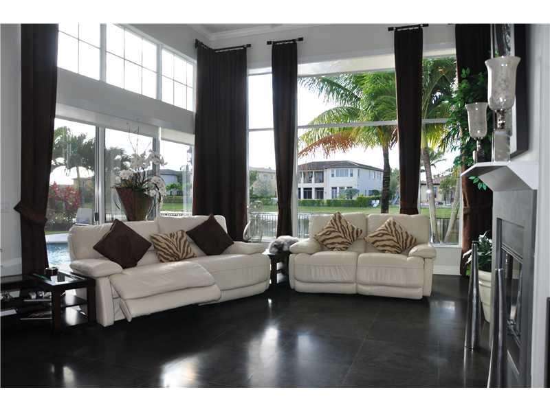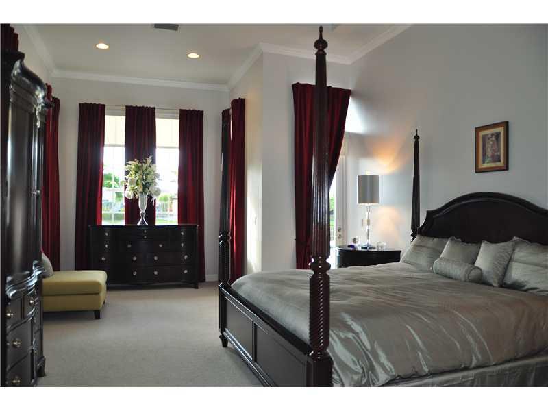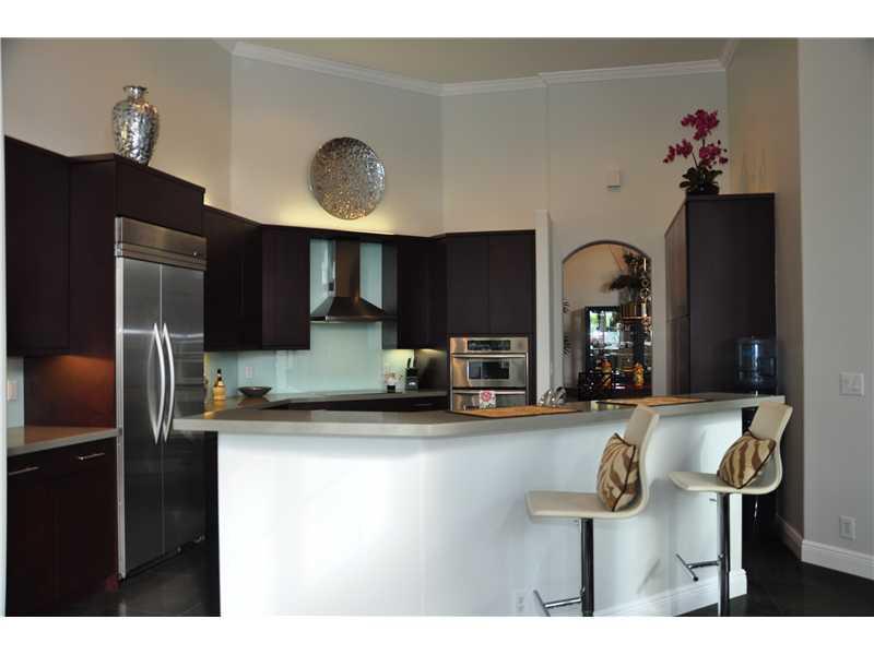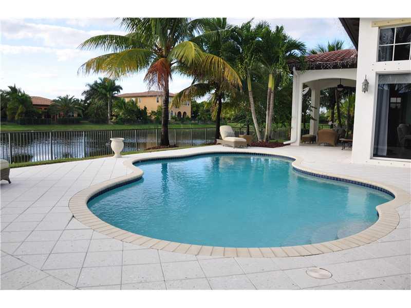 Heron Bay Waterfront Beauty. Over $200K in custom upgrades in this modern & elegant home.(5'h BDR is den) Boasting:24"Egyptian Basalt tile floors, wood in bedrooms, stainless Kitchen, built in Fridge,& fully fenced. Doors are Bartel glass sliding, pocket or solid core doors, Master bathroom "Calacatta" Gold Marble, floors & shower walls and tub surround. The Cabinets were imported from Europe. Large heated free form pool w/oversized marble-like deck overlooking wide water. So much more ask for list.