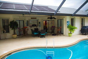Move-in ready....4/2 pool home on cul-de-sac in the highly sought after Boca Fontana community. Home is ideal for a large family. Formal dining room, separate living room and family rooms and an oversized screened lanai with freeform solar heated pool. The central kitchen overlooks the pool area with a service window. This home has several features including eat-in kitchen, split bedroom plan, step down formal living room, vaulted ceilings, wood and tile flooring, LED lighting throughout, accordion shutters, and large corner lot. MUST SEE!