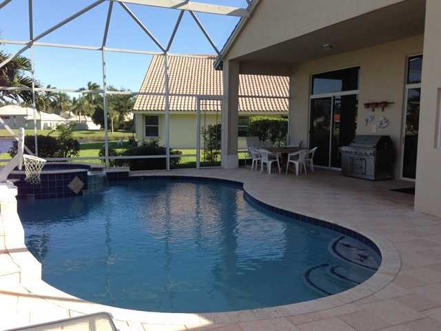 Spectacular Boca Isles lakefront Home. Located in a cul de sac. Newer kitchen with granite and SS appliances.Large side yard as well as an oversized pool and spa. Here is the Boca Isles home that you have been waiting for. Upgrades galore. New Glass front entry door, over sized floor tile ''NO CARPET IN HOME'',spectacular wood kitchen with SS appliances,granite. upgraded base molding throughout the home as well as crown molding in living area. Walls and ceiling have knock down texture (NO POPCORN). Master bath has updated wood vanity with a wood cabinet and granite. the custom pool and spa must be seen to be appreciated. The screen enclosure is over sized with a custom paver deck and an over sized heated spa. Second bath has been updated with newer tile. The roof was replaced in 2006.