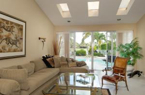 STUNNING GOLF AND LAKE VIEWS FROM THIS ONE STORY POOL HOME, WITH 2 LARGE BEDROOMS, PLUS A DEN.FEATURES INCLUDE A REMODELED KITCHEN WITH GRANITE COUNTER TOPS, A WET BAR, NEW WATER HEATER, SKY LIGHTS AND HIGH CEILINGS THROUGHOUT. WHITE TILES AND PLANTATION SHUTTERS SHOW OFF THE WONDERFUL NATURAL LIGHTING. 2 NEWER A/C UNITS, A HEATED POOL PLUS A TILED GARAGE. COME AND GET THIS BEAUTY - PRICED TO SELL!!!