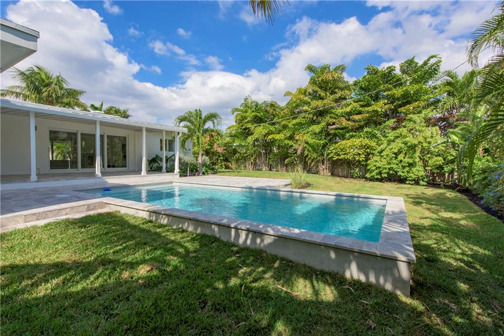 Completely re-built and updated! Newly imagined with refreshing contemporary finishes, porcelain wood tile floors, white finished cabinetry, Granite and Quartz tops, recessed lighting and premium fixtures throughout. Both dining and master open out to a spacious covered terrace that overlooks a new pool and private, well landscaped yard. The open Great room has wood burning fireplace and media wall with custom built-ins. New tile roof, whole house impact windows circular drive and covered parking